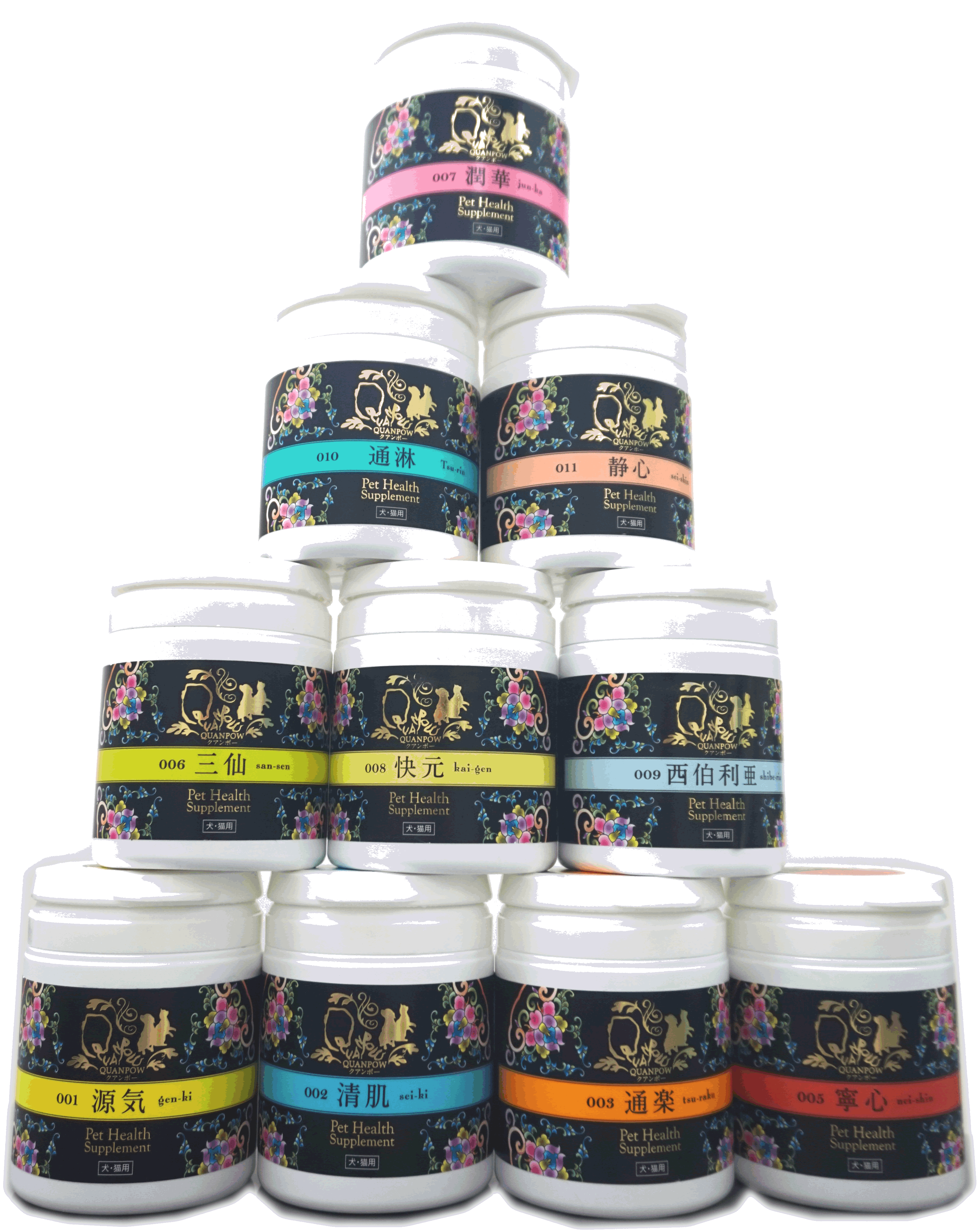 当院で使用している漢方薬の原材料は人用の中成薬と同等の品質のものを厳選し、防腐剤・香料・着色料は一切使用しておりませんので、安心して与えることが出来ます。また、通常使われている漢方と違い、錠剤タイプであるため、飲ませるのも楽です。