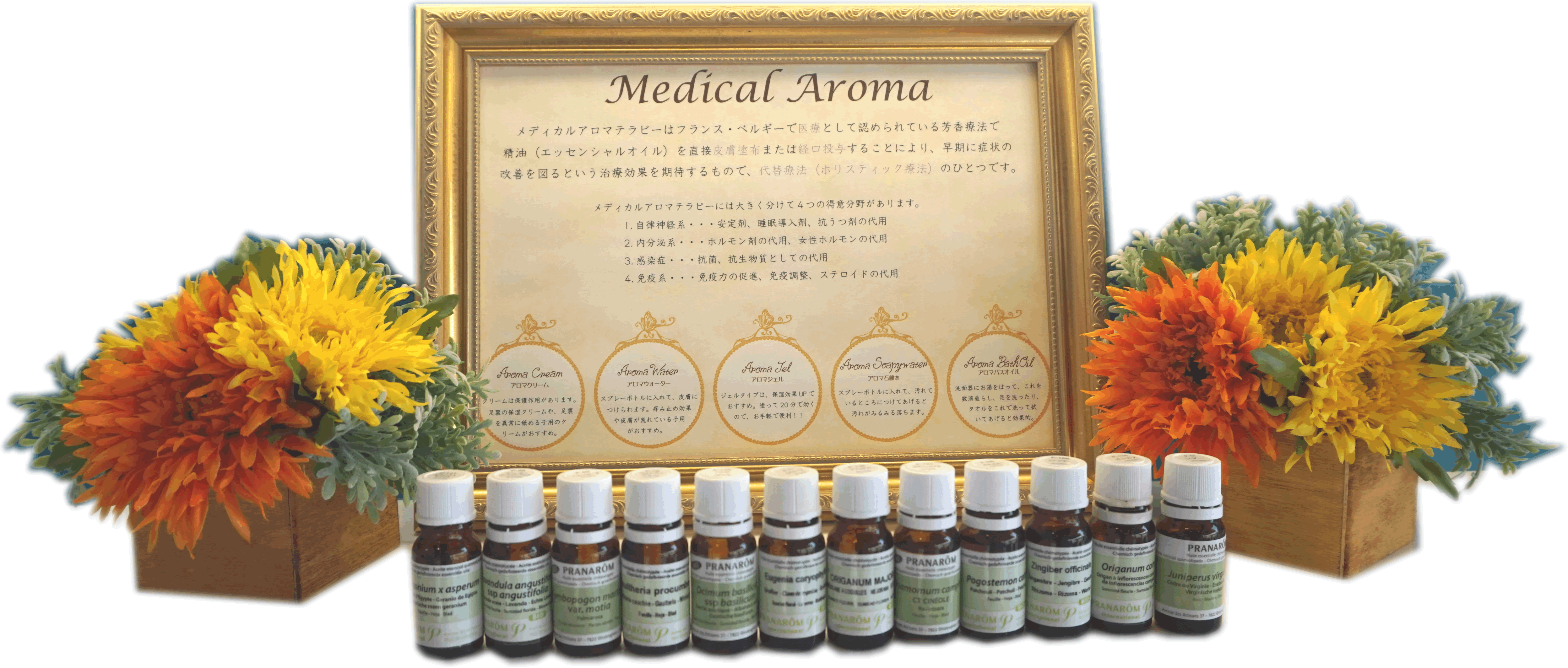 メディカルアロマテラピーはフランス・ベルギーで医療として認められている芳香療法で、精油を直接皮膚に塗ったり、口にしたりすることで、治療の手助けをするものです。 メディカルアロマテラピーには大きく分けて4つの得意分野があります。