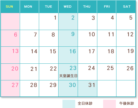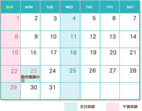 *23日、29日はセミナー出席のため休診です。